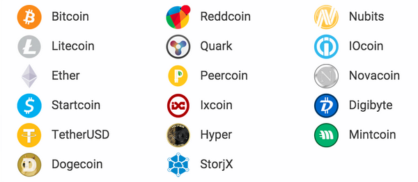 Litecoin, Ether, Bitcoin CASH and so on