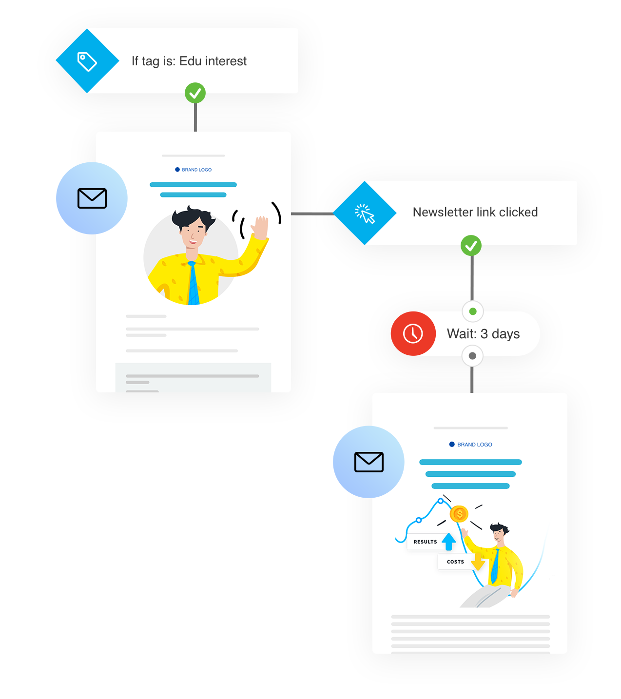 | Prepare custom offers for your customers | Create multiple variants of your campaign emails and landing pages to match your audiences' purchasing needs. | | | |