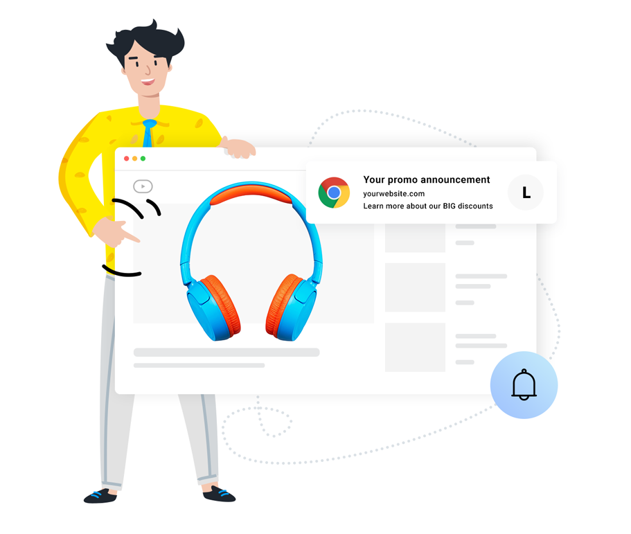 | Get more customers with web push notifications | Bring customers back to your website with web push notifications. Win back customers by implying a sense of urgency in your offer or promotion. | | | |